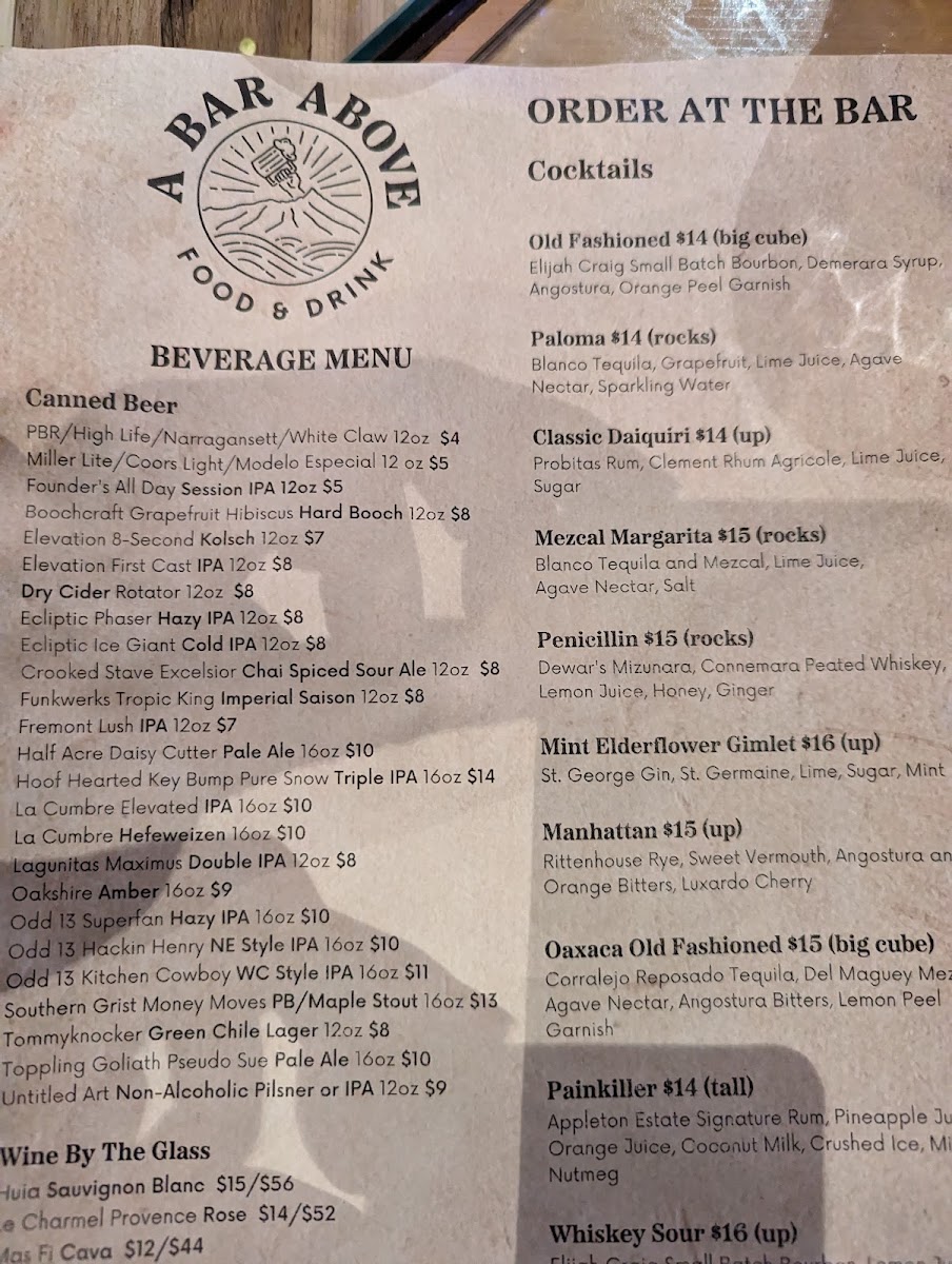 Introducing the Menu at A Bar Above